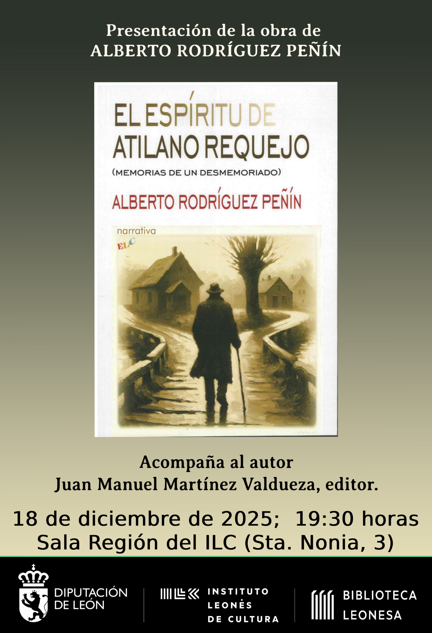 18 diciembre | 7:30 PM - 8:30 PM Presentación de la obra «EL ESPÍRITU DE ATILANO REQUEJO. MEMORIAS DE UN DESMEMORIADO», de Alberto Rodríguez Peñín