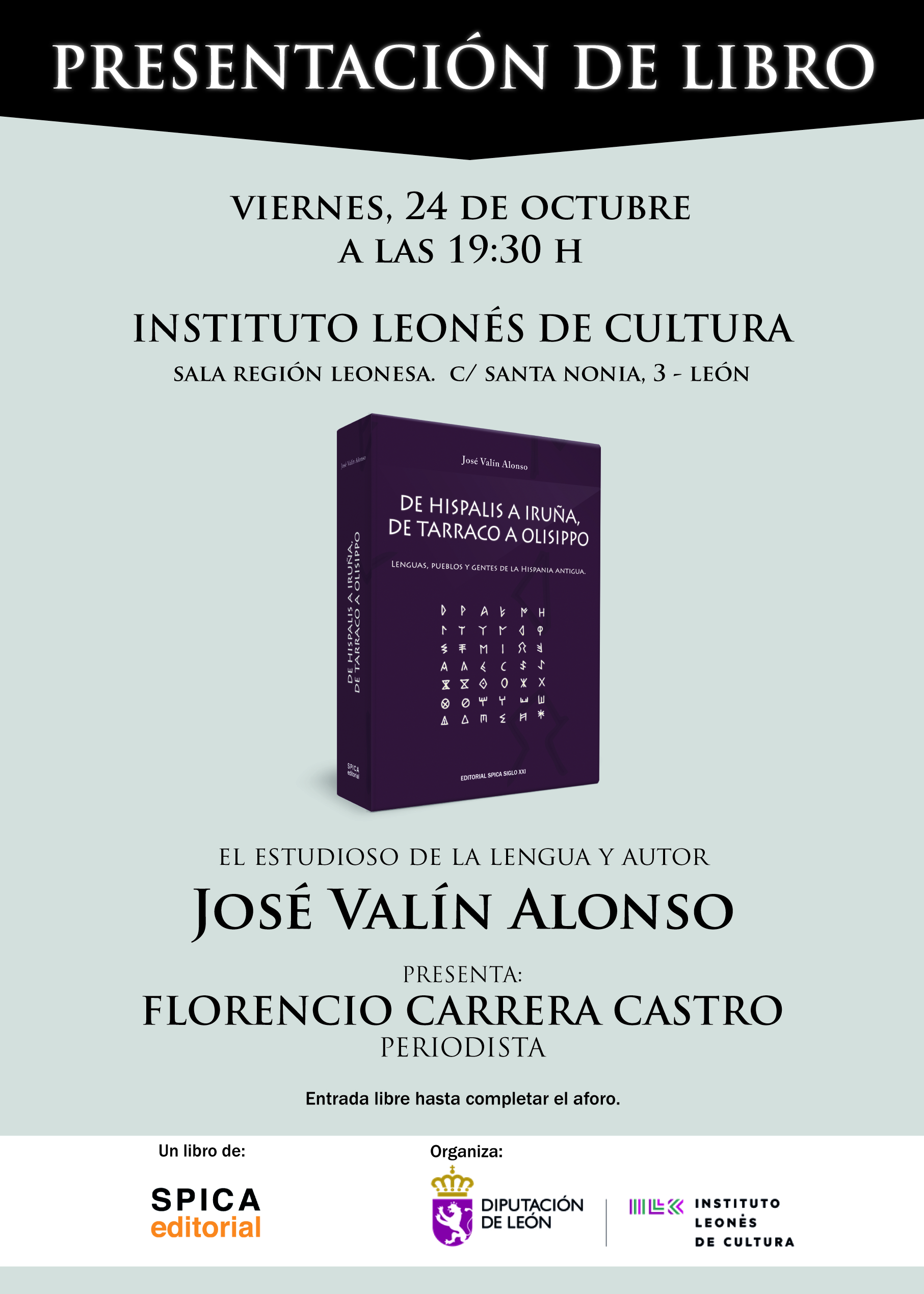 24 octubre | 7:30 PM - 8:30 PM Presentación del libro «DE HISPALIS A IRUÑA, DE TARRACO A OLISIPPO», de José Valín Alonso