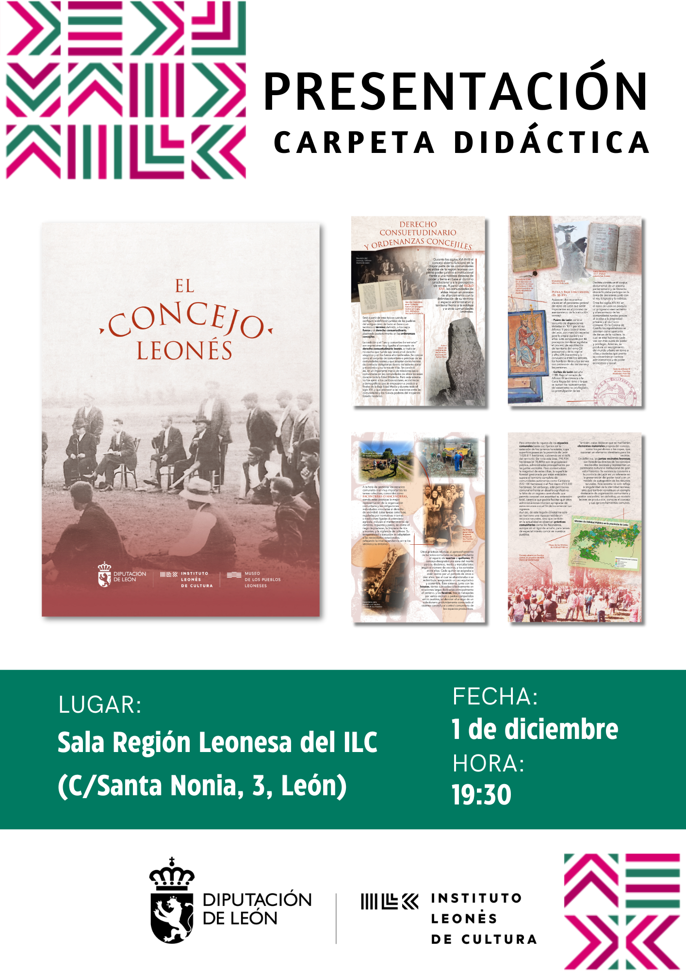 1 diciembre | 7:30 PM - 9:00 PM Presentación «CARPETA DIDÁCTICA: EL CONCEJO LEONÉS», por Francisco Javier Lagartos Pacho y Javier Miguélez Rodríguez