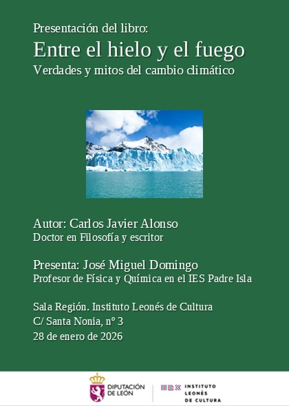 28 enero, 2026 | 7:30 PM - 8:30 PM Presentación del libro «ENTRE EL HIELO Y EL FUEGO. VERDADES Y MITOS DEL CAMBIO CLIMÁTICO», de Carlos Javier Alonso